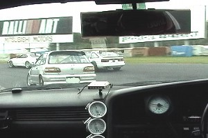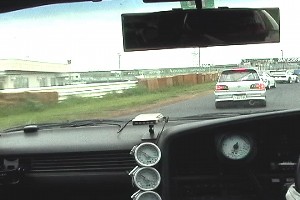ホームストレート直後の第1コーナー手前。 最終コーナーを抜けてもダンゴ状態のまま、ホームストレートから思いっきり第1コーナーに突っ込みます(笑)。 速いクルマの何台かは最初からインについているようですが、これは参考になるかもしれませんね。もっと軽量化するか、ブレーキをがんばらないとコースアウトしそうですが。(^_^;) 次回の走行会では無理しない程度にチャレンジしてみようと思います(笑)。 こうしてみると車載ビデオはためになりますね。協力してくれたあっくんに感謝感謝です。m(_ _)m |