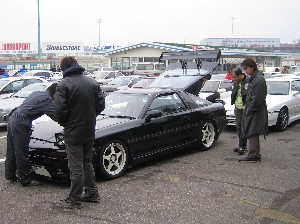 今回初参加のシロスー改号。 走行前準備に手間取りましたが、lainさんと夢朗さんのバックアップで無事準備完了! サーキットに初めて足を踏み入れた夢朗さんはこの日から目覚め、、、。 |