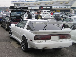 シロスー改号の迫力あるリアウィング。 いつも思いますが、白いボディにGTウィングは似合いますね〜。 |