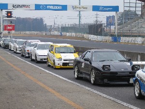 走行開始直前! ここで待つ数分が長く感じます(笑)。 あと、シロスー改号の後ろにいるランエボが異様に速かったです。 直線勝負なら負けませんでしたが(爆)。 |