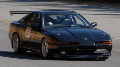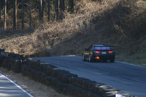 cinさんに撮影してもらったままま号。 シケイン直前でブレーキングして、これからステアリングを切り始めようとしているところですね。 ぐいっとフロントが沈み込んでいるところがよく分かると思います。 |