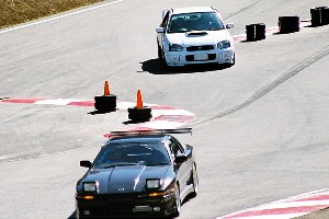 インプレッサに追い掛け回されるままま号。 シケインを抜ければアクセル全開でぶっちぎりだぁ(笑)。 |