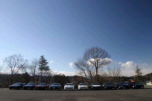 ままま号の奥側に停まっているクルマは、一緒に走ることになった弟の友人たちです。 しのいはテクニカルなコースなので、シルビアやインプレッサはかなりの強敵です。 |