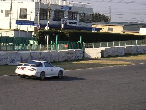 裏ストレートエンドの夢朗号。 足回りはほぼノーマル状態なので、最終コーナー手前でブレーキングするとフロントがグイっと下がるのがよく分かります。 コーナー手前の直線部分でしっかり減速、クリッピングで再加速、の定石をしっかり守っていますね。(^^) |