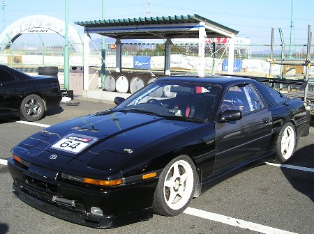 コースアウト直後に撮影したままま号。 誰が見ても「こいつコースアウトしやがったな!(笑)」ってのが分かる状態になってます(笑)。 恥ずかしいので速攻でスタンド裏の洗車場に持っていきました。(^_^;) ボディ側にダメージが無かったのはラッキーでしたね。 |