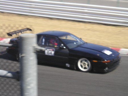 1コーナー後のS字通過中のままま号。後ろ側が電柱でカブって隠れていますが。(^_^;) 当日の走行中の画像はこれしかなかったのでしょうがないっす。(--;) |
