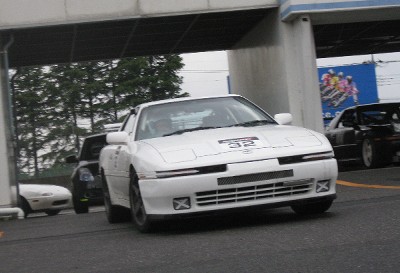 1ヘア過ぎのところで痛恨のスピン! あとで聞いたら、どうやらブチ撒けたオイルの上に思いっきり乗ってしまったそうです。 しかし大事に至らなくて本当に良かったです。(^_^;) |