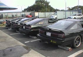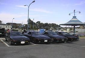 柏オフの70スープラによる集合写真。 手前からサカイ@JZA70さん、亀山さん、ミツさん、まままの順に並んでいます。 |