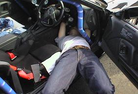 続いてミツさんによる一人ジャーマン(笑)! 途中で固定用のクリップがなくなった!というアクシデントもありましたが、 無事見つかってひと安心です。 ちなみにミツさんはスパルコのフルバケを導入しました。 すごくホールドがいいですよ〜。 |
