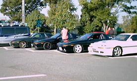 FISCOの入り口渋滞。すでにたくさんのスープラが並んでいました。 ここでエンストしたのを後ろにいたすぷらさんに目撃されてしまいました。(^_^;) 長旅で疲れていたんですよ〜(爆)。 |