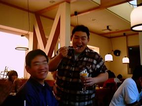あの超特盛りのスパゲッティを食べた後にスガさんとたばこさんはケーキを注文していました。(^_^;) それを見ていたすぷらさんは・・・。 |