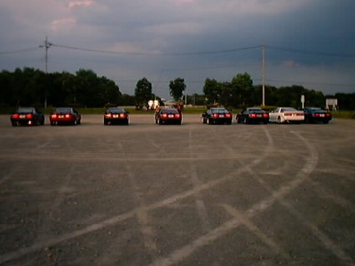 日が暮れてきてから最後まで残っていたクルマたちでヘッドライトをつけたところです。 クルマの間隔がバラバラなのはいつものことなので気にしないで下さい(爆)。 |