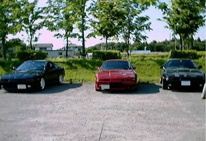 左から、ミツ号、スガ号、ぽち号です。 スガさんのスープラのツートンはいつ見ても目立ちますね〜。遠くからみてもすぐに分かります。 |
