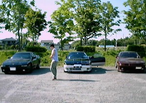 左から、サムライ号、001号、tetu号。 赤い服を来たセクシーな後姿はす〜むす。さんです。画像でドアップで写っているのはミツさんです。この日は001さんと一緒にLSDについて熱く語り合いました。そして、ミツさんにはドリフトの実演指導までしてもらっちゃいました。(^^) |