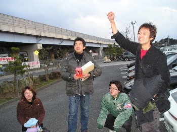 第3の目的地、魚市場で開催されたジャンケン大会でのひとコマ。サカイ@JZA70さんのテンションが最高潮に達したところでもあります(爆)。 豪華賞品も用意されて、みんなも気合が入りまくりでしたね〜(笑)。 この駐車場で雑談しているうちに日が暮れてしまったんですが、夜の部ということで、イルミネーション関連の仕込みネタを公開している人も多かったです。 おいらもいろんな光り物関係のチューニングは参考になりました。 |