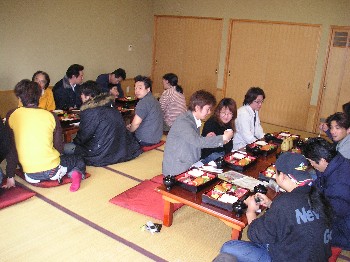 みんなで楽しく昼食をとっているところ! 真ん中でカメラ目線なのはたかぴょんさんです(笑)。 |
