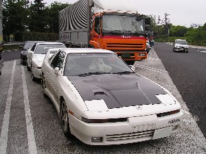 反対側から撮影したところ。 白スープラ軍団はいつも並んでいたような気もします(笑)。 |