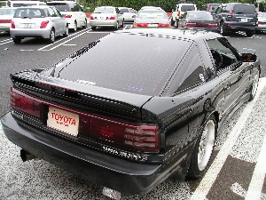 飛び入りJZA号。 ターボAダクトを装着した2.5ターボRです。おいらと同じTEINのHA車高調を装着しています。 このアングルからだと分かりにくいですが、相当なシャコタン仕様となっていてスパルタンな印象を受けます。 |
