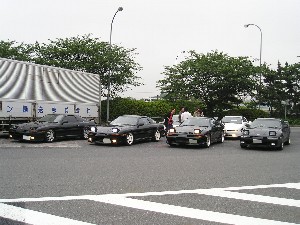 一足早く蓮田PAに到着したヴァールス号、夢朗号、ままま号。 大型車用の駐車場に停めたので3台が縦に並んでいます。(^_^;) このあと、飛び入りJZAさん、たかぴょんさん、ごすけさんが到着しました。 |