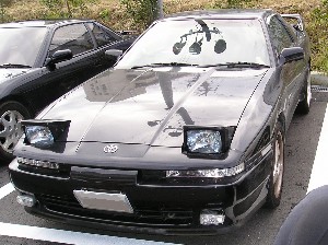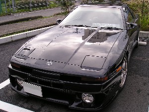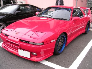 会場のオートウェーブから一番近いところに済んでいるたかぴょんさんのスープラ。 クリアレンズでワイドになっているフロントウィンカーがかっこいいですね〜。 |
