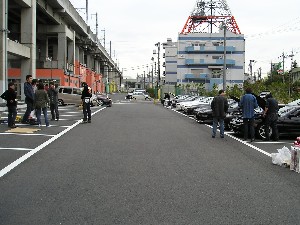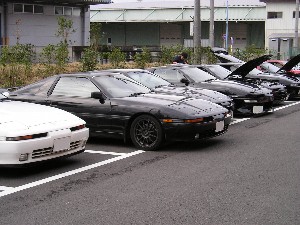 駐車場にずら〜っと並んだ70スープラたち。 横に並べすぎたので全部一気に撮るのが難しいです。(^_^;) |