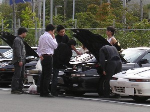 オフ初参加のたつさんのスープラ。 70スープラには珍しいデザインのホイールを履いています。 近々、おいらと同じHIDを装着するとの話でした。楽しみですね。(^^) |