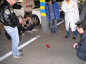 巷で大人気?!のミニラジコン。 この日もラジコンに色々と仕込みを加えていました(爆)。 |