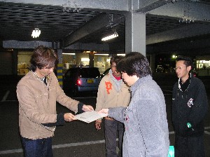 ベタですが、みんなでサカイさんに宛てて書いた色紙を贈呈。 内容がどんなのだったかは、、、本人に聞いてください(笑)。 |