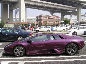 近くにこんなスーパーカーも普通に駐車されていました。 これはランボルギーニかな?!エンジン音を聞きたかったので少し待っていましたが、 残念ながらオーナーは戻ってきませんでした。(^_^;) |