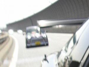 次の目的地の羽生PAに向かうため常磐道に入った途端、怪しい軽自動車に絡まれ、、、。 車線変更の鋭さがハンパねぇ! |