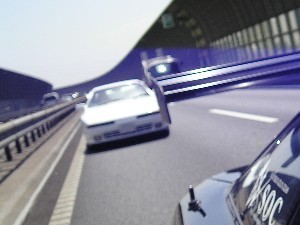 外環道に入ってフル加速した時でも後ろにピッタリ付かれてブローオフの音で威嚇。 何じゃこのクルマは〜〜!! |