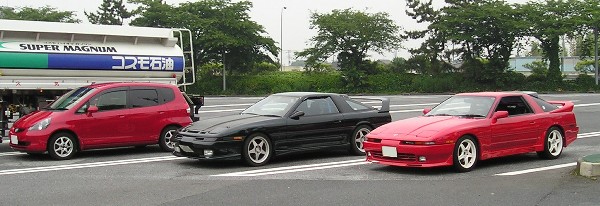 lain号。 4台で走っていると子供が一番注目するのが赤いこのスープラ。 やはり赤は目立ちますね。白ホイールもバッチリ。 また、オフ参加率一番の座が揺ぎ無い一台でもあります。 |