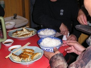 みんみんではお決まりの大盛りごはん。 普通盛りでいいよ〜なんて言っていると、途中で後悔することになります(笑)。 あと餃子を3人前注文する時は、2回に分けた方が常に焼き立てを食べられるからいいんですよ〜。 |