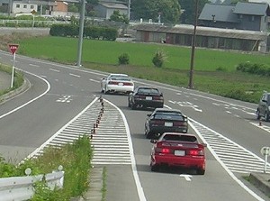 東北自動車道を北上するとバイク軍団が! そこにごすけ号が乱入! バイク軍団が全員振り返る様子を後ろからず〜っと観察してました(笑)。 |