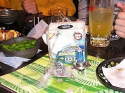 みんなから提供されたじゃんけん大会用の賞品たち。 誰も言っていないのに毎回賞品の持込みがあるところがすごい(笑)。 ちなみに横の枝豆とサワーは賞品ではありません(笑)。 |