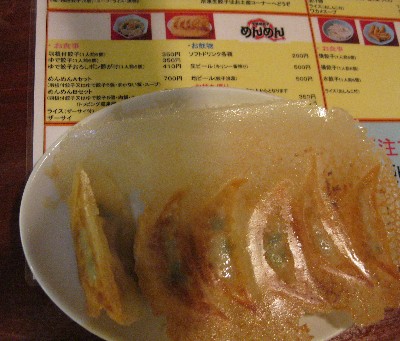 めんめんの羽付き餃子。 この羽だけでも結構おいしかったりします。 |