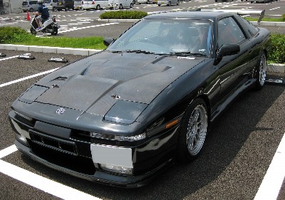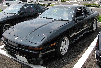 亀山さんのスープラ2号機。 ホイールも含めたフルノーマル車。いつもながらピカピカです。 コダワリの七宝焼きのフロントノーズがポイント。 |