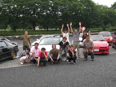 白ホイールに白ボディの夢郎号。 ロールバーが入ってますますサーキット仕様としてばっちりきまってきました。 |