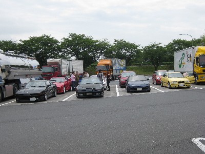 トラックとトラックの間のすき間に詰め込まれたマシンたち(笑)。 ここで久々の再開に喜び楽しむひと時がありました。(^^) 定例のオフ会ってこういう一面もありますね! |