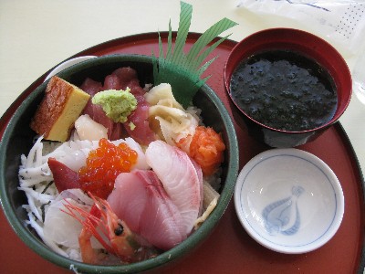 これが銚子の海鮮丼です!! これがまたメチャクチャ旨いんですよ、ホントに。 思わずもう一杯オカワリしたくなるほどです(笑)。 |