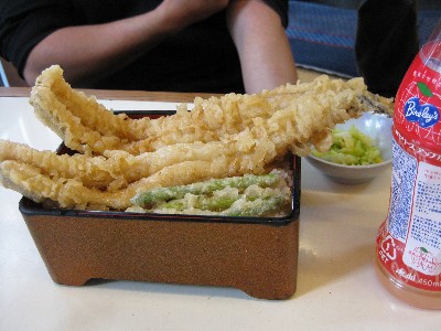 超特大のアナゴ丼。 サクサク衣にふかふか肉厚のアナゴが最高です。 全部食べてみたいのですが、一品頼むと腹いっぱいになってしまうので、何人かで個別に頼んで分けるのが良いのかも。(^^) |