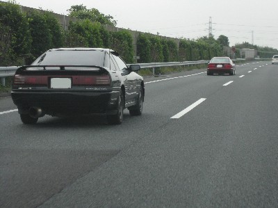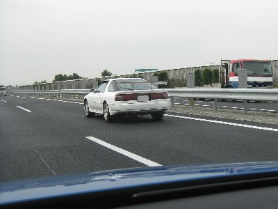 ヴァールスさんのモンスターBMWの後ろに続くhaneさんの70スープラ。 京葉道路はいつも混んでますが、この日は渋滞も少なくラクチンでした。(^^) |