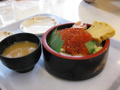 おいらも狙っていたいくら丼。 新鮮ないくらの粒々がめちゃくちゃ美味そうでした。(^^) やはりこういうのは漁港で新鮮なのを食べるのが一番ですね。 |