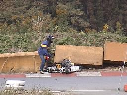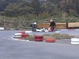 第1コーナー奥に激突! ここまで突っ込むには相当のスピードでないと無理なんですけど・・・。(^_^;) その勇気に感服します。^^; |