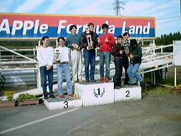 カート終了後の表彰式の様子。 みんな嬉しそうですね〜! この後シャンパンを全員に向かってお見舞いしました(爆)。 |