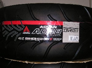 新しいSタイヤ、A048。 同じサイズでもラジアルと比べて幅広気味ですが、余裕がありそうなら次回は245サイズを選ぶかもしれません。 |
