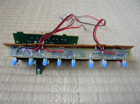 『各スイッチ』の取り付けです。 LEDに拡散キャップを被せてパネル本体に組み込んでいきます。 既存の電源は使用しないので配線を穴から背面に出します。 3番目の画像で削った箇所に基板が来るように本体に組み込みます。 |