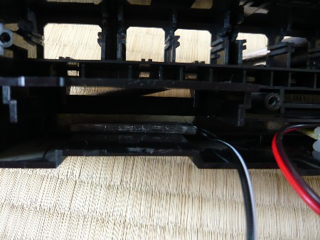 基板が本体に干渉する部分があるので、合計11箇所ルーターで約3mm削ります。 削る分だけ基板を小さくすればいいのですが、基板のピッチが少なくなり回路の作成が難しくなります。 ここは『削っては合わせ』を繰り返して慎重に行いましょう。 |
