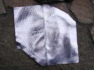 次にサーモクロスを遮熱板の形に合わせて切り取ります。 使う遮熱布の厚みは0.4mmの粘着付きでOK。 ハサミでチョキチョキ切れます。(^^) |