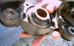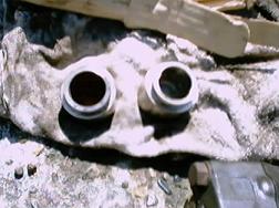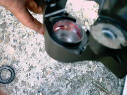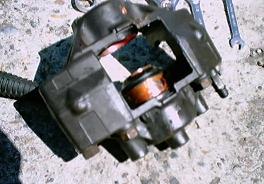 ピストンを取り外した所。 ポンプの口をブレーキラインの取り付け口にはめて、スイッチオンすればOKです。スイッチオンする前に、ピストンとピストンの間に板切れを挟んでおいてください。飛び出す勢いがとんでもなく強いので、指を挟まないように気をつけて下さい。ダンボールを折りたたんだものを入れてもOKです。 あと、ピストンが抜けると同時にブレーキフルードが噴き出すので、目をつぶっておいた方がいいです。おいらは思いっきり目潰しにあいました。(^_^;) 目に入ると、結構しみるので痛いです(爆)。 |